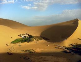早上抵达柳园,早餐后乘车前往敦煌(车程2小时),游览国家4A级风景名胜区——鸣沙山、月牙泉(车程10分钟,游览2小时)中餐后参观世界文化遗产——莫高窟(车程30分钟,游览2小时)。晚观敦煌夜景,可自费观看敦煌飞天歌舞(180元/人),品尝风味小吃。